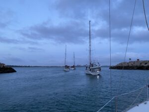 Esta travesía fue diseñada por el Club Náutico de Rota, para la formación de los navegantes en el dificil arte de navegar de noche. Con la contaminación luminica se confunden las luces de puerto con las de poblaciones costeras. En esta edición 2023 se aventuraron 16 embarcaciones y un total de 70 tripulantes. A su llegada a a Puerto Sherry fueron recibidos por la marineria y por el Capitán del Puerto Antonio Vega, conr los atraques asignados.