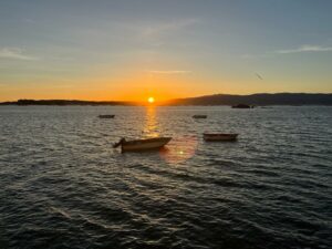 El tercer premio fue para José Antonio Márquez Hornillo, con una foto de un atardece y unas pequeñas embarcaciones fondeadas. Esta foto tomada en sus vacaciones en Ría de Arousa, nos transmite paz, una paz que solo nos puede dar el mar, sobre todo a los que amamos y tenemos la pasión por este medio.