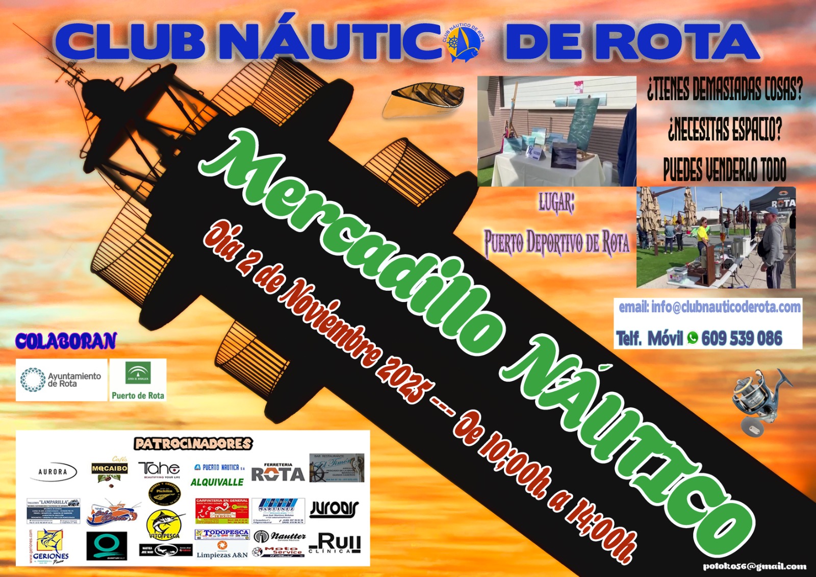 Como en pasadas ediciones, llega el mercadillo náutico del Club Náutico de Rota, los stands estarán situados en la zona gourmet del Puerto Deportivo, verás las propagandas y nuestros logos. Es totalmente gratuito para toda persona que quiera exponer, vender o cambiar cualquier objeto que sea relacionado con la náutica.